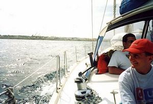 Cerchiamo di guadagnare più miglia possibili prima che il tempo peggiori, abbiamo un'onda lunga di prua e rolliamo leggermente. Andrea ha ricominciato a fotografare a mitraglia. Ecco cosa gli servono due macchine fotografiche: ad averne una sempre carica. Cambia i rullini come fossero i caricatori di una pistola. Siamo tutti radunati a poppa ed il timore di incappare in un mare difficile di prua ci fa desiderare di arrivare al più presto alla meta invece di desiderare di protrarre il più a lungo possibile il piacere dell'ultima navigazione della vacanza. Sono le undici ed abbiamo ancora davanti a noi, procedendo alla velocità attuale, più di sette ore di navigazione. |