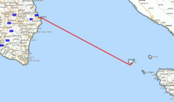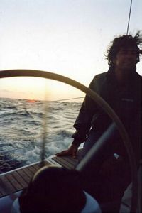 Dopo aver issato la vela con una mano di terzaroli e spiegato il genoa per metà della sua superficie, ci mettiamo in rotta alle 18,30. La barca corre a otto nodi spinta da un vento di ventidue, il mare é mosso, come da previsioni. Alte onde raggiungono di traverso la poppa facendoci rollare. Cominciamo ad impratichirci al timone. Erano anni che non usavo la ruota e, abituato alla barra, faccio fatica a prenderci la mano. Anche Alberto prova mentre gli altri marinai decidono di aspettare momenti meno impegnativi e meno assonnati. |