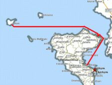 L'isola di Othonì assieme a Erikusa e Mathraki fa parte delle isole Diapontie. Si trovano a nord ovest di Corfù fuori dalle rotte marittime abituali. Il paese di Ammo, davanti al quale ci siamo ancorati, non ha un vero e proprio porto ma un semplice molo con un basso pescaggio che permette l'attracco solo a chiatte ed é protetto da una diga di massi. Le barche che qui si fermano, fanno tappa per la traversata senza scendere a terra. |